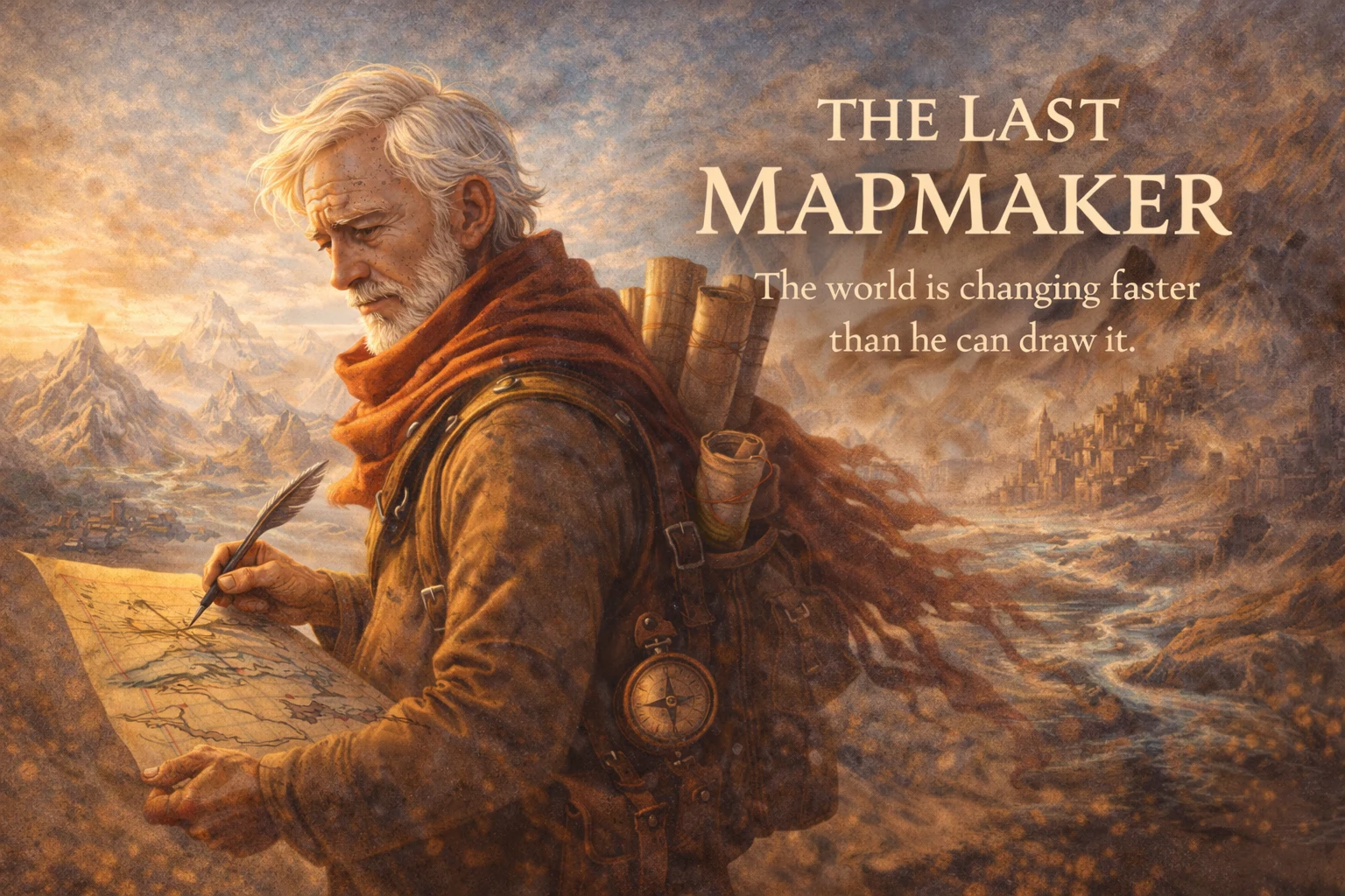 As landscapes shift and borders dissolve, a lone mapmaker fights to preserve meaning through art. Painterly visuals and measured pacing turn this into a meditation on change, memory, and acceptance. It is a quiet, premium short that feels vast despite its intimate scale.